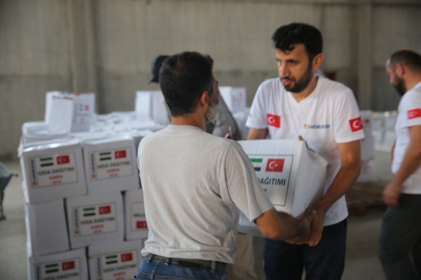 Zor günler geçiren Suriye'de acil yardım çalışmalarını sürdüren derneğimiz Ramazan ayı sonrası yapmış olduğu yardım çalışmalarının ilk etabında geçen hafta yaklaşık 3 bin aile için kahvaltılık ve gıda kolisi dağıtımı gerçekleştirdi.